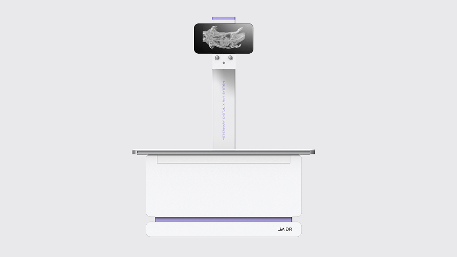 創作說明:采用完美設計、屏蔽地刺干擾、所有的電腦收藏在特殊設計的立柱內,確保所有的操作者及寵物不受電磁干擾。實用設計定位:X射線球管可以下降至桌面水平高度,并進行±90°旋轉,完成直立或者任意角度的體位拍攝。球管與托盤可進行同步或分立移動。令拍攝對象無需移動便可以實現各部位的拍攝。